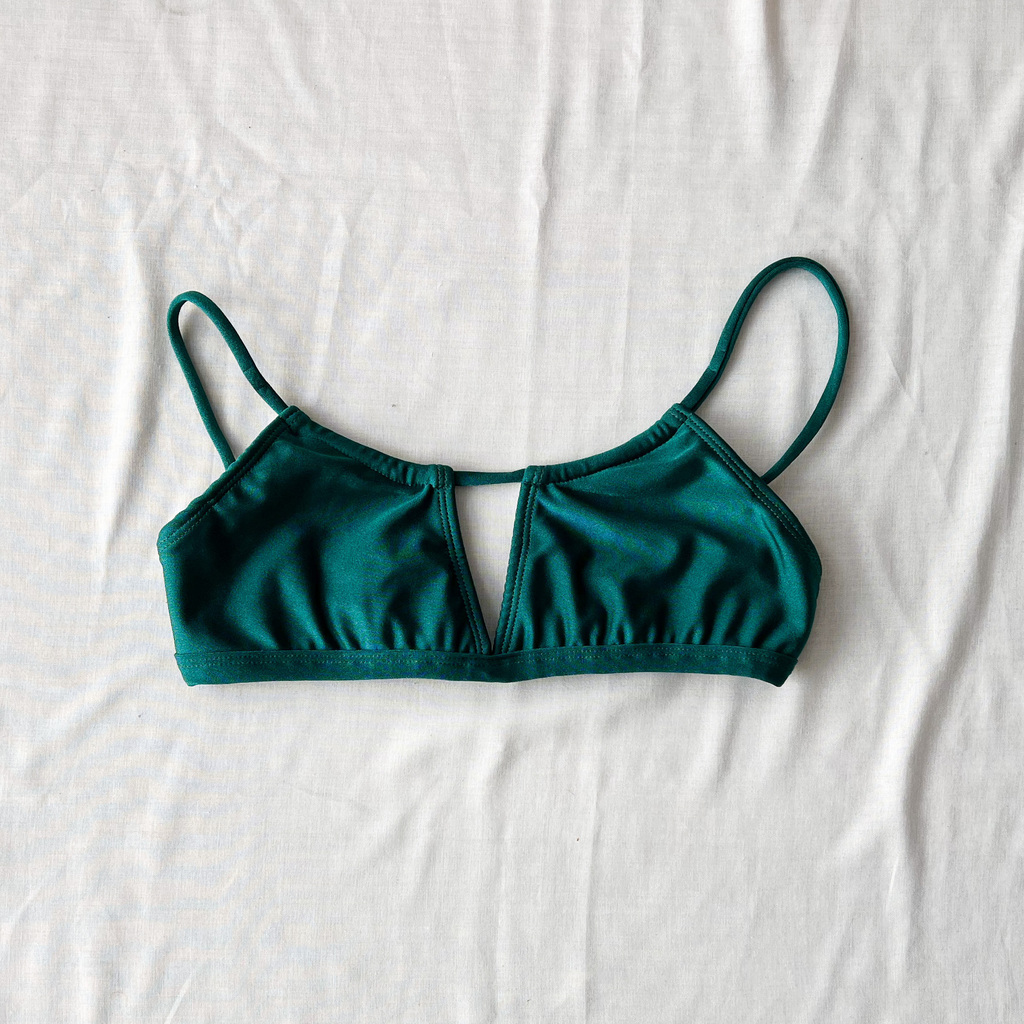Top en V con breteles regulables y lazo para atar y regular la esplada.