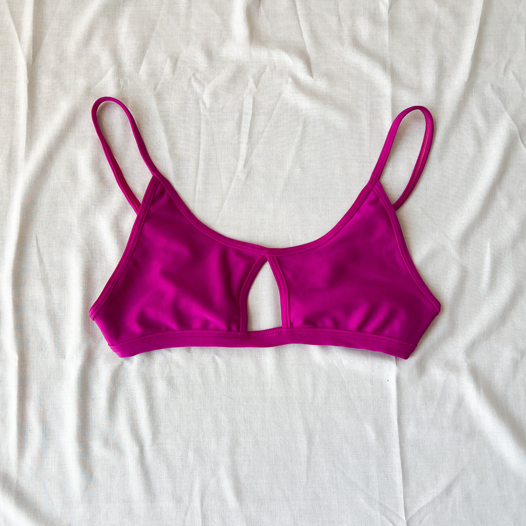 Top con abertura en el centro, breteles regulables y lazo para atar y regular la esplada.